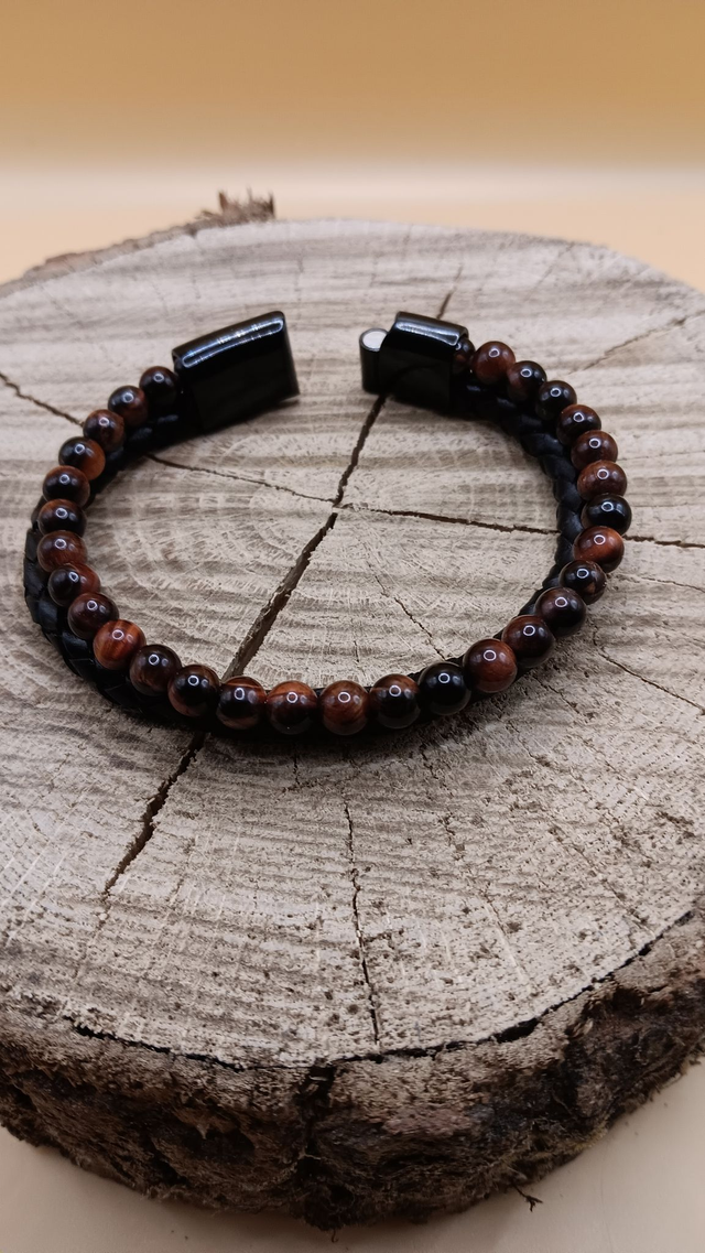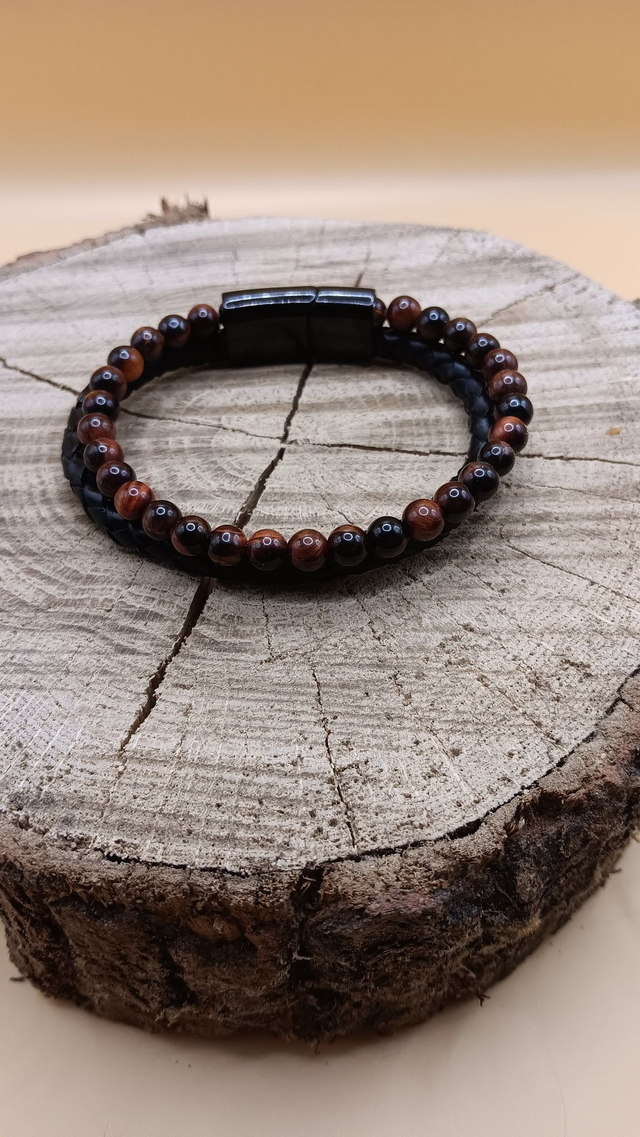 Bracelet double cuir - Œil de Taureau